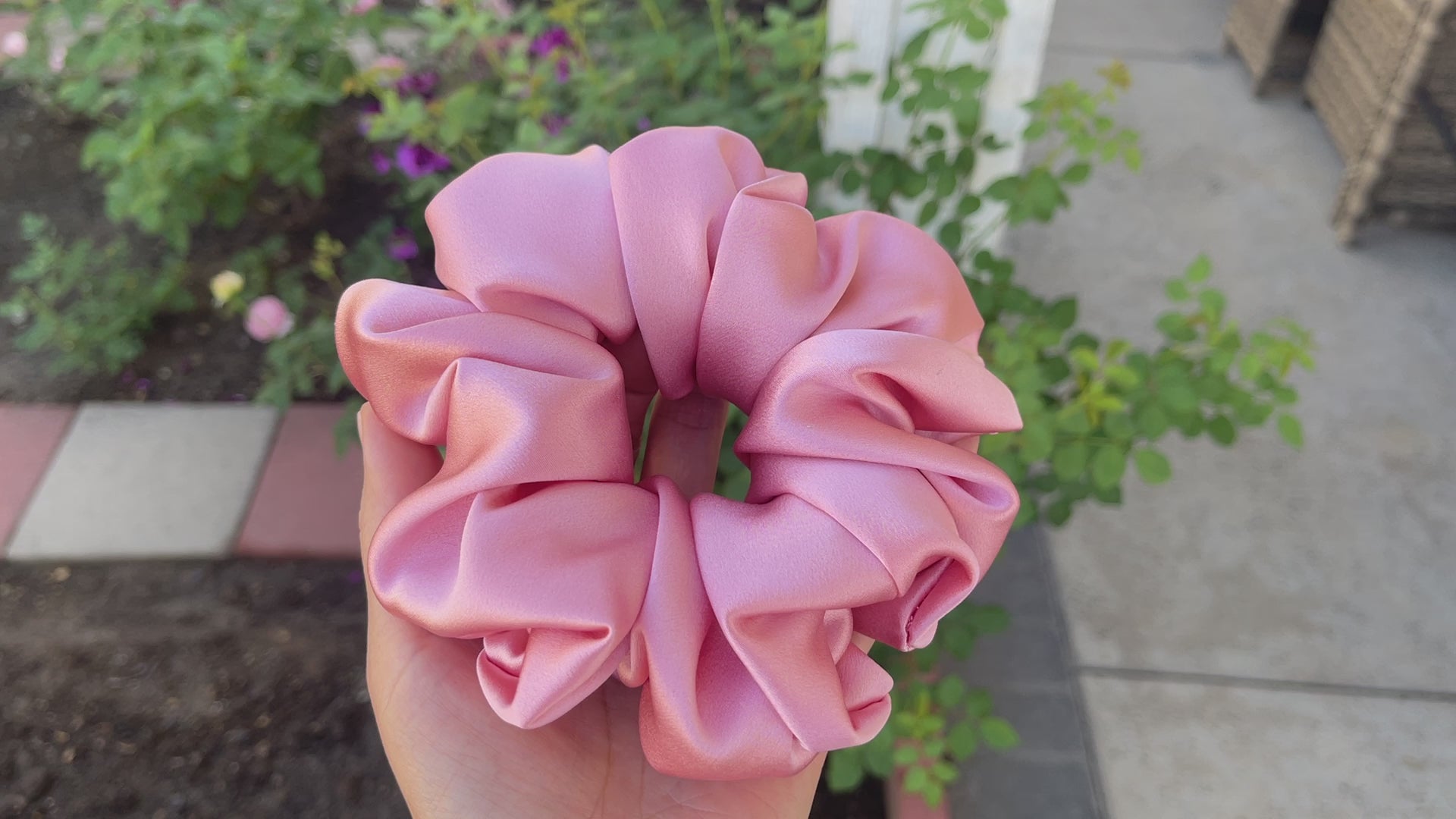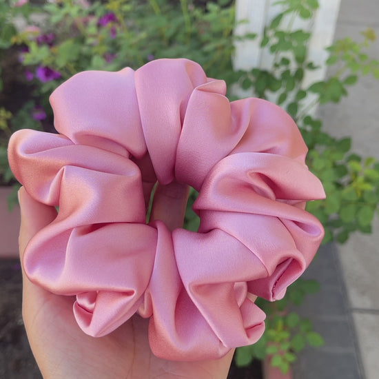 Rose Pink Hair Tie 30 Momme 6A Grade 100% Pure Mulberry Silk Satin Scrunchies Oversized Jumbo Regular Skinny Ultra Thin Mini Hair Scrunchy