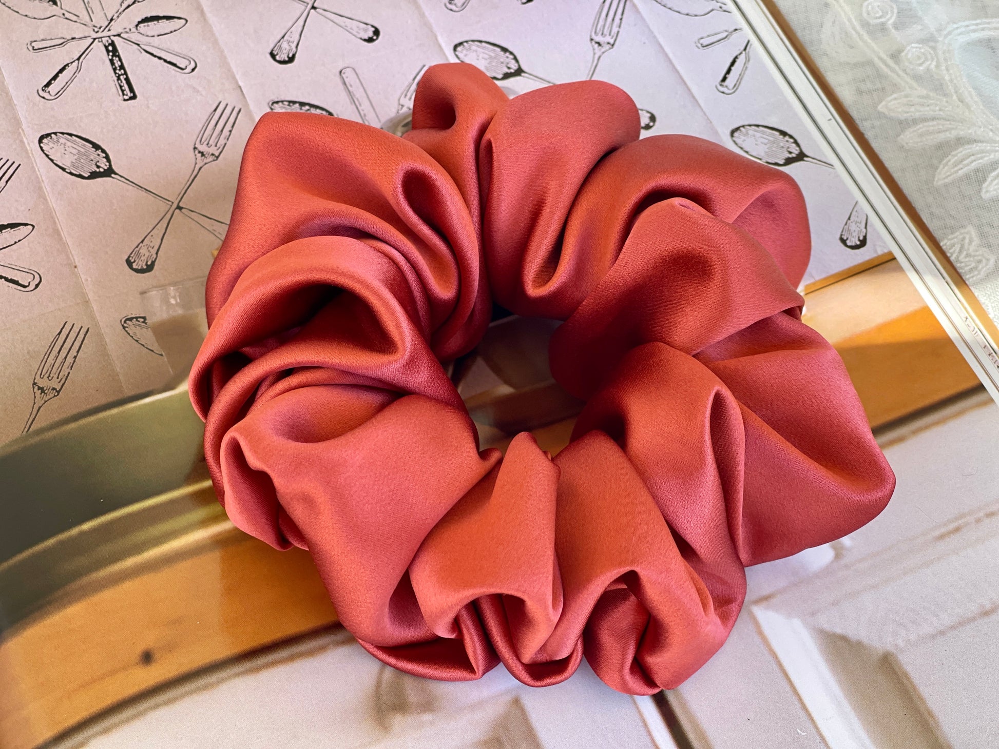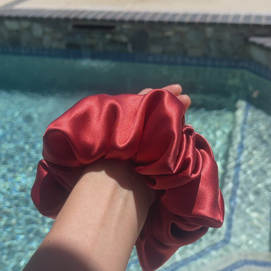 Rusty Red 30 Momme 100% Pure Mulberry Silk Satin Scrunchies XL Giant Jumbo Regular Skinny Ultra Thin Mini Hair Tie Scrunchies For Hair Tie