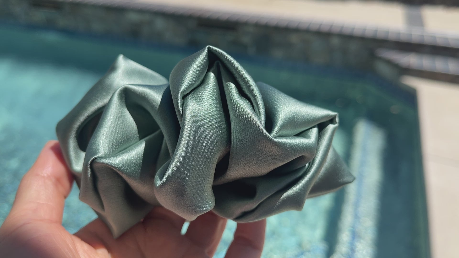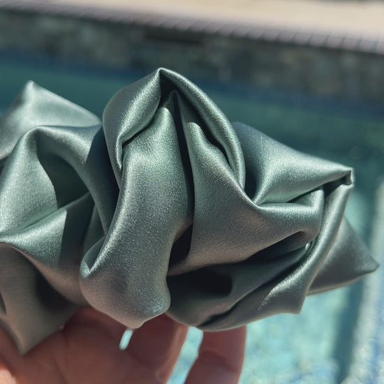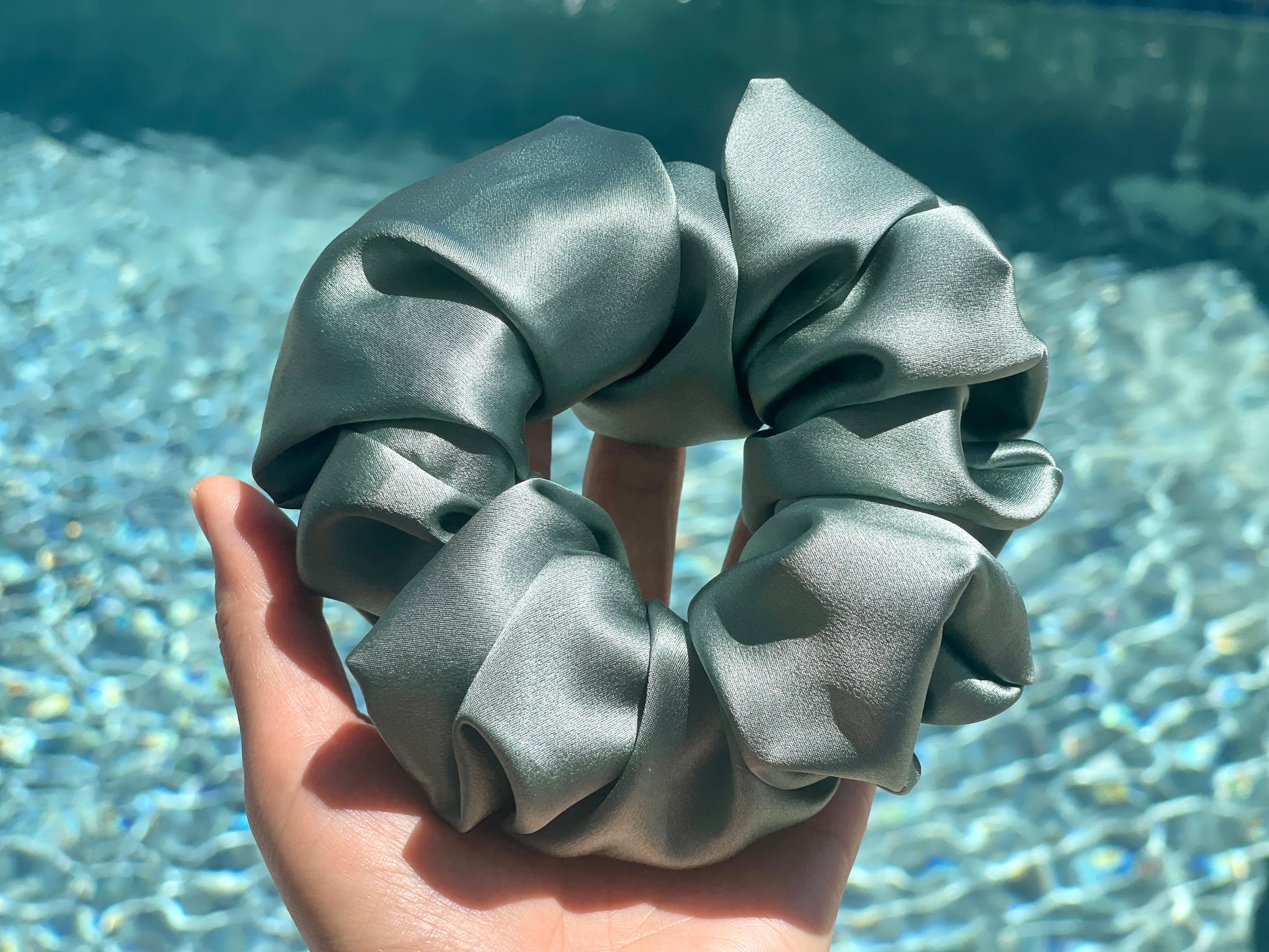 Sage Green 30 Momme 100% Pure Mulberry Silk Satin Scrunchies XL Giant Jumbo Regular Skinny Ultra Thin Mini Hair Scrunchies for bridesmaids