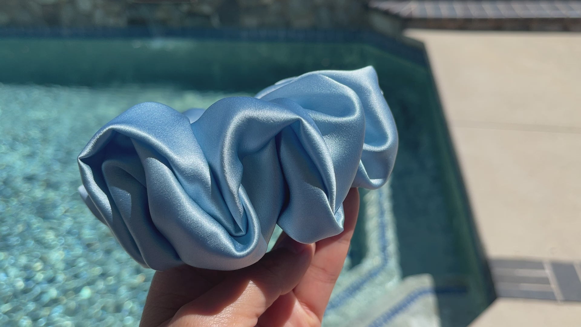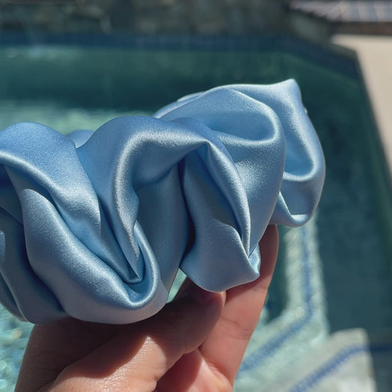 Sky Blue 30 Momme 100% Pure Mulberry Silk Satin Scrunchies XL Giant Jumbo Regular Skinny Ultra Thin Mini Hair Tie Gift For Wedding Hair Tie