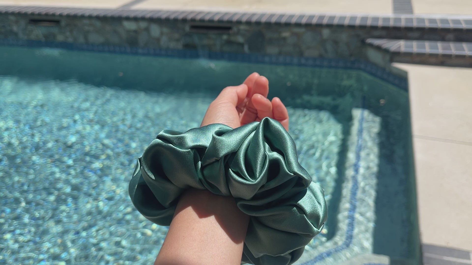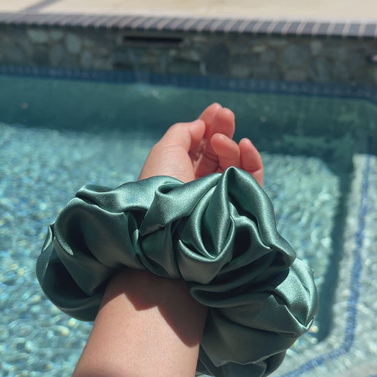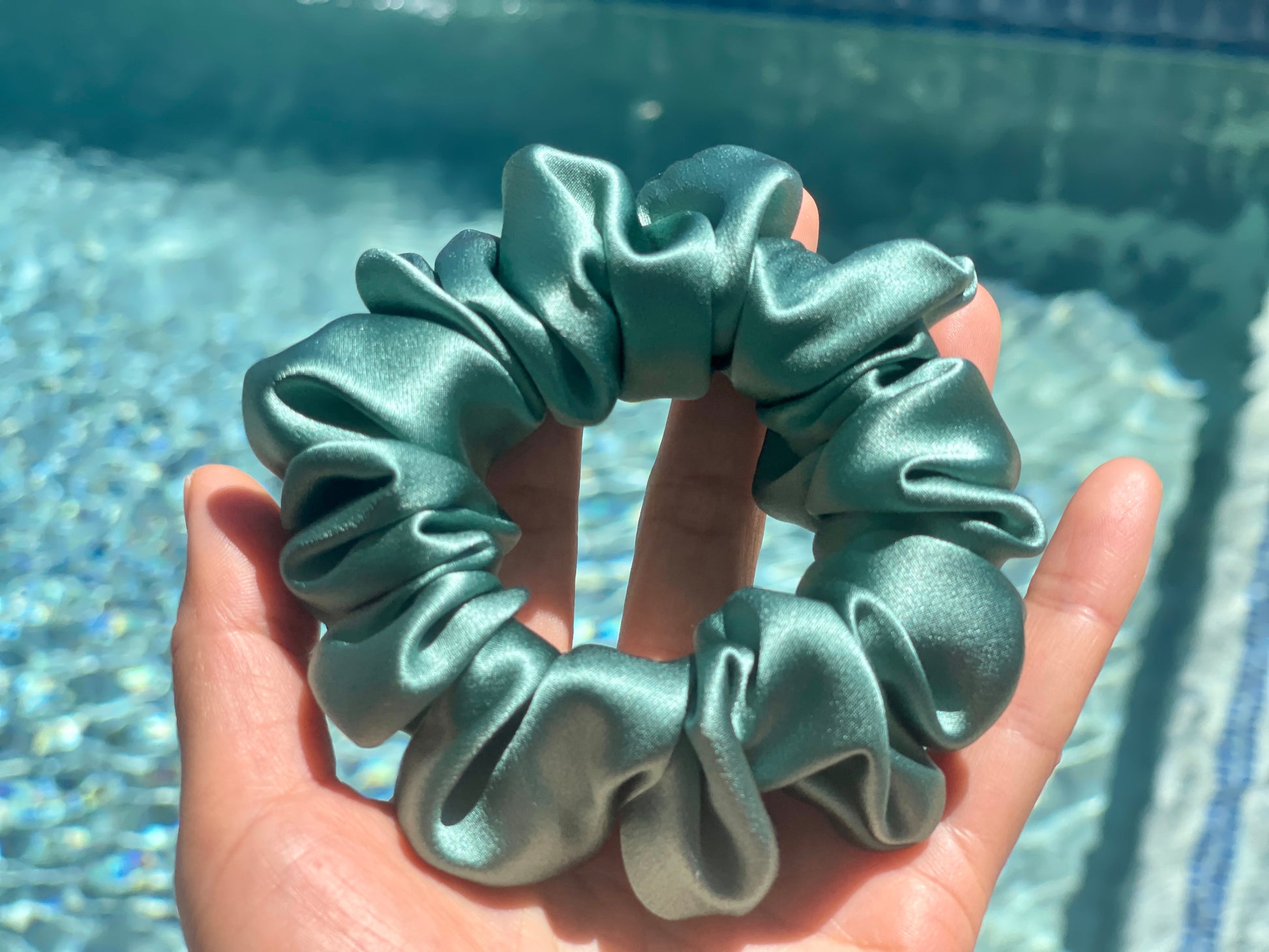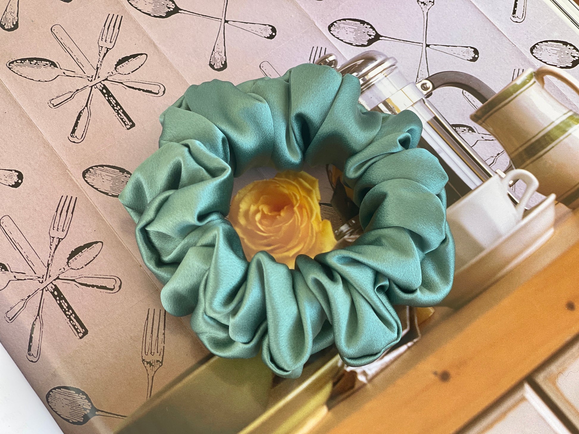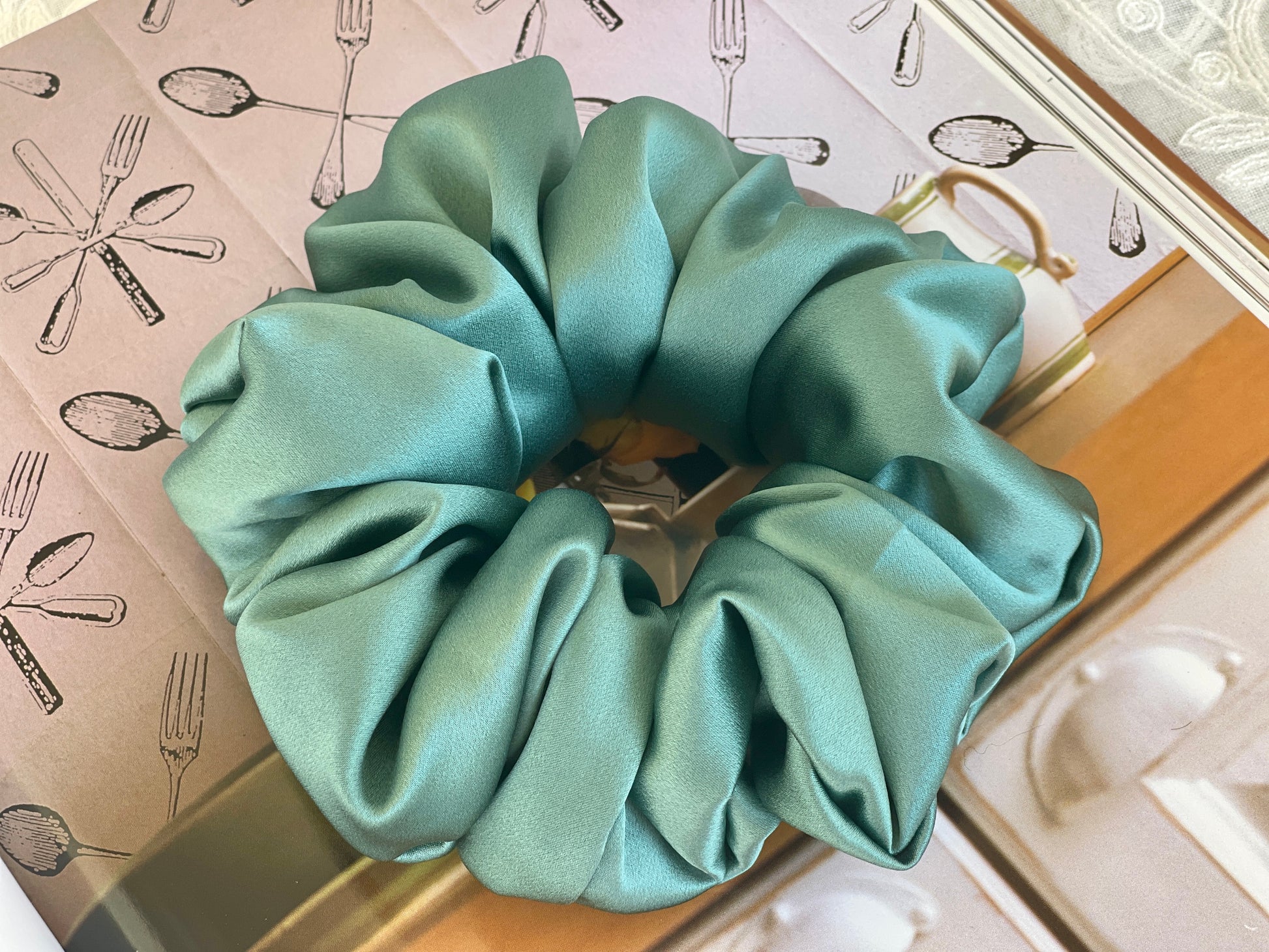 Fern Green Hair Tie 30 momme silk Soft Satin Scrunchies Elastic Hair Tie Scrunchies Oversized Scrunchies Jumbo Large Skinny Mini Gift