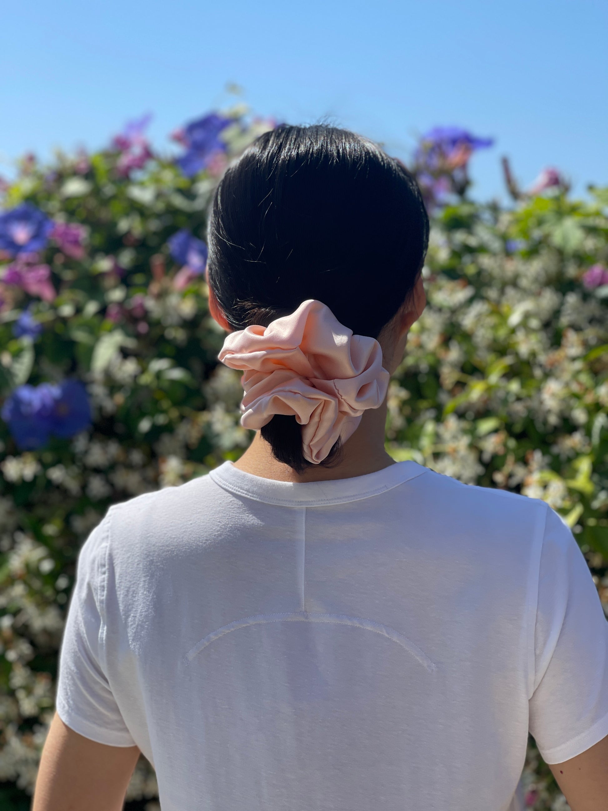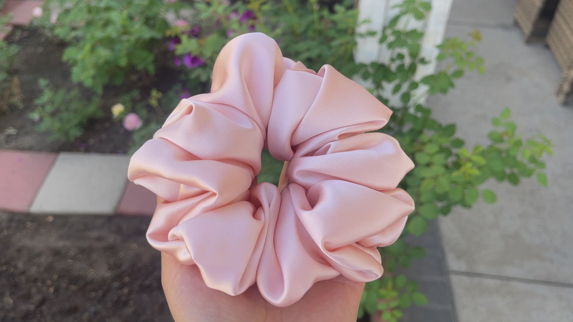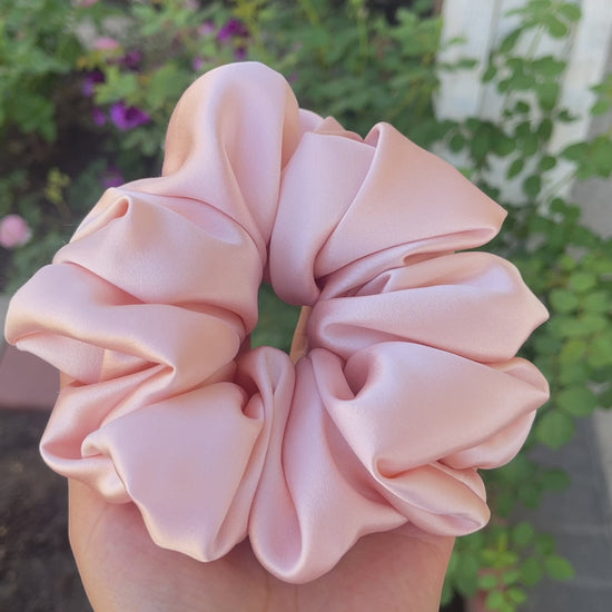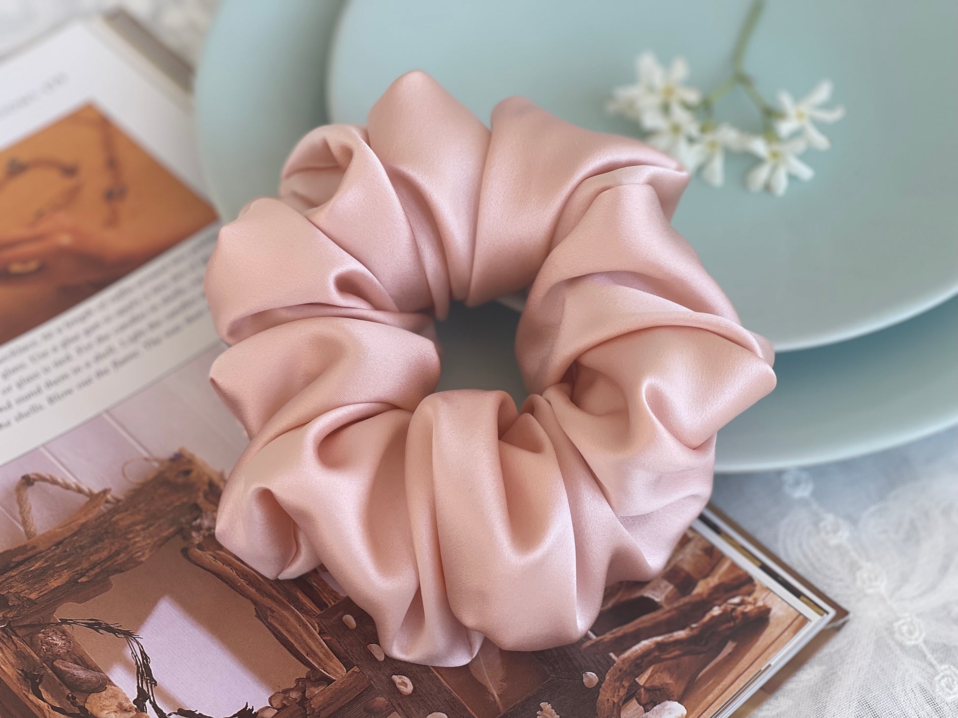 Pink Blush 30 Momme 6A Grade Pure Mulberry Silk Satin Scrunchies XL Oversized Jumbo Regular Skinny Thick Thin Mini Chic Hair Tie Romantic