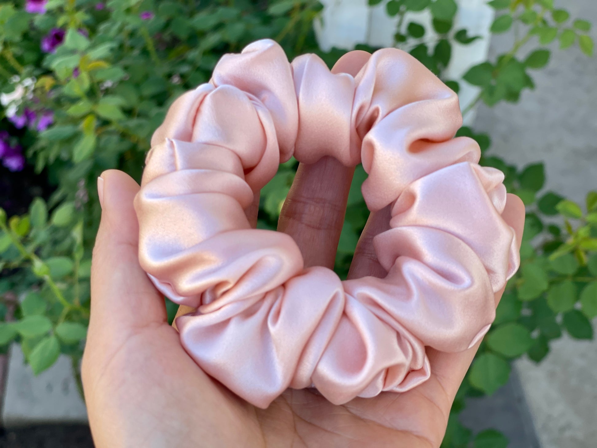 These scrunchies are handmade by me in my studio in USA for everyday wear! These are made of 30 momme silk so they will last a long time. They work well for both thick and thin hair.