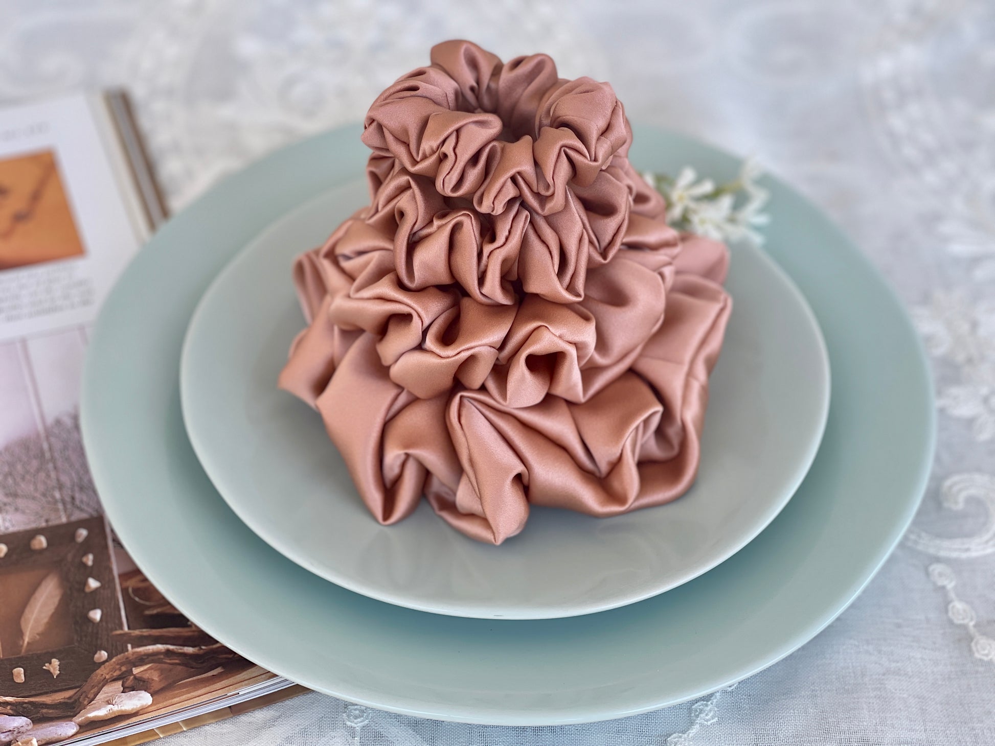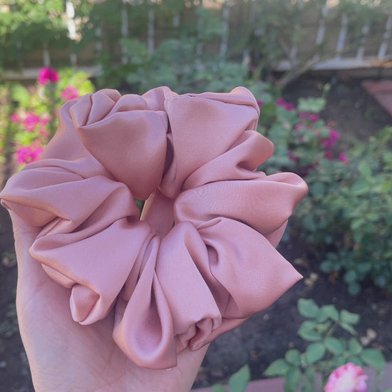 Rose Gold 30 Momme 6A Grade 100% Pure Mulberry Silk Satin Scrunchies XL Giant Jumbo Regular Skinny Ultra Thin Mini Hair Tie Gift For her