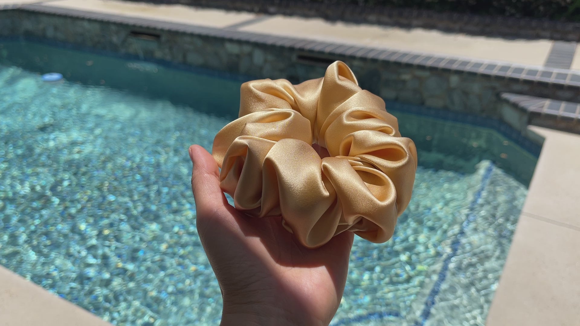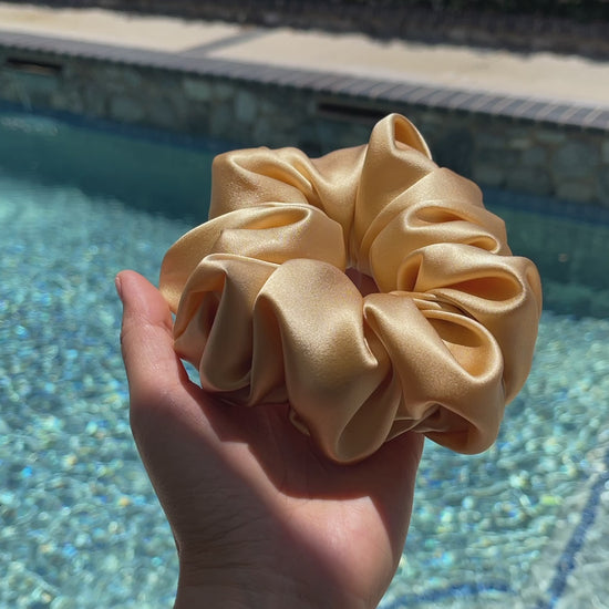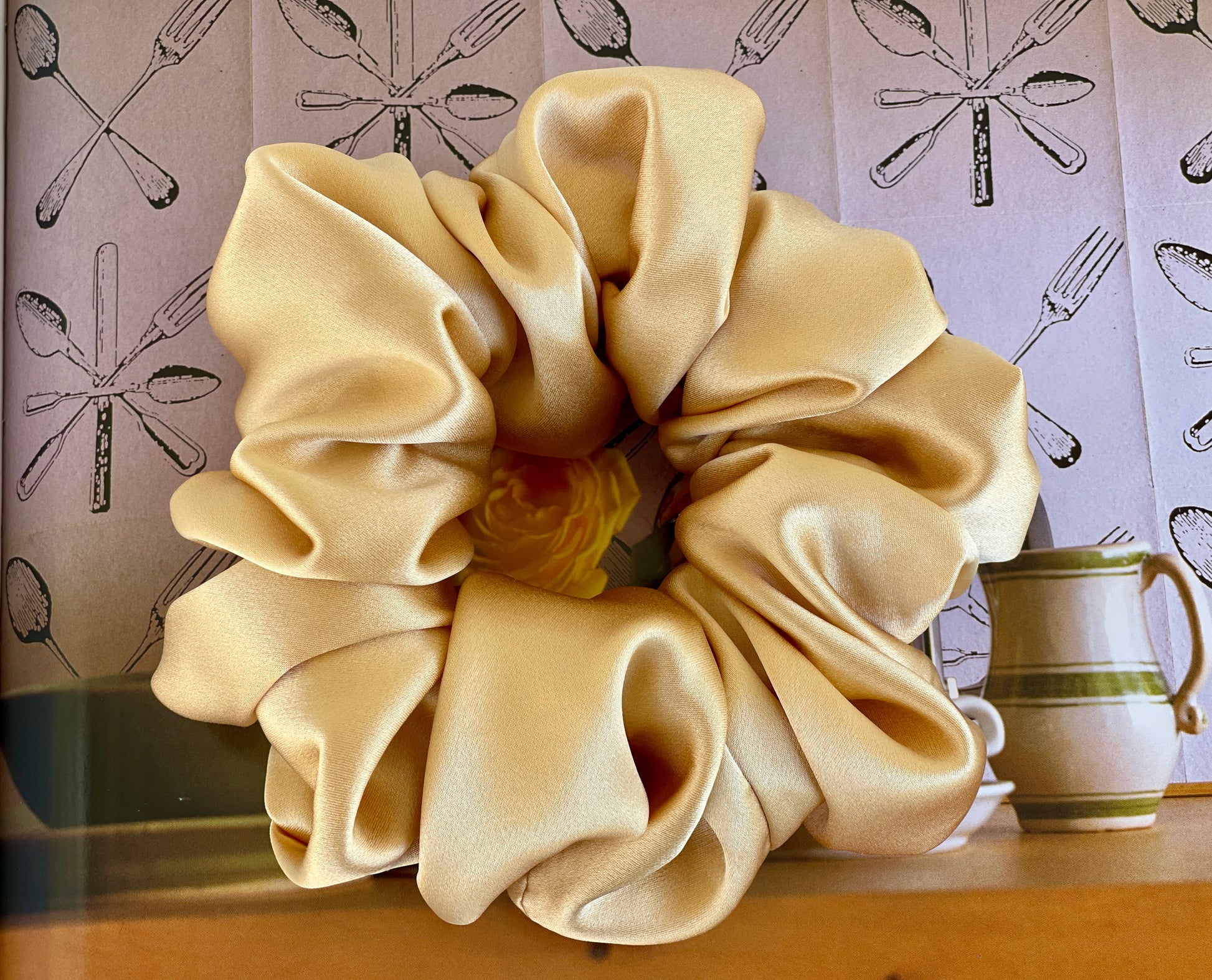 Champagne 30 Momme 6A Grade 100% Pure Mulberry Silk Satin Scrunchies XL Giant Jumbo Regular Skinny Ultra Thin Mini Hair Tie Gift For her